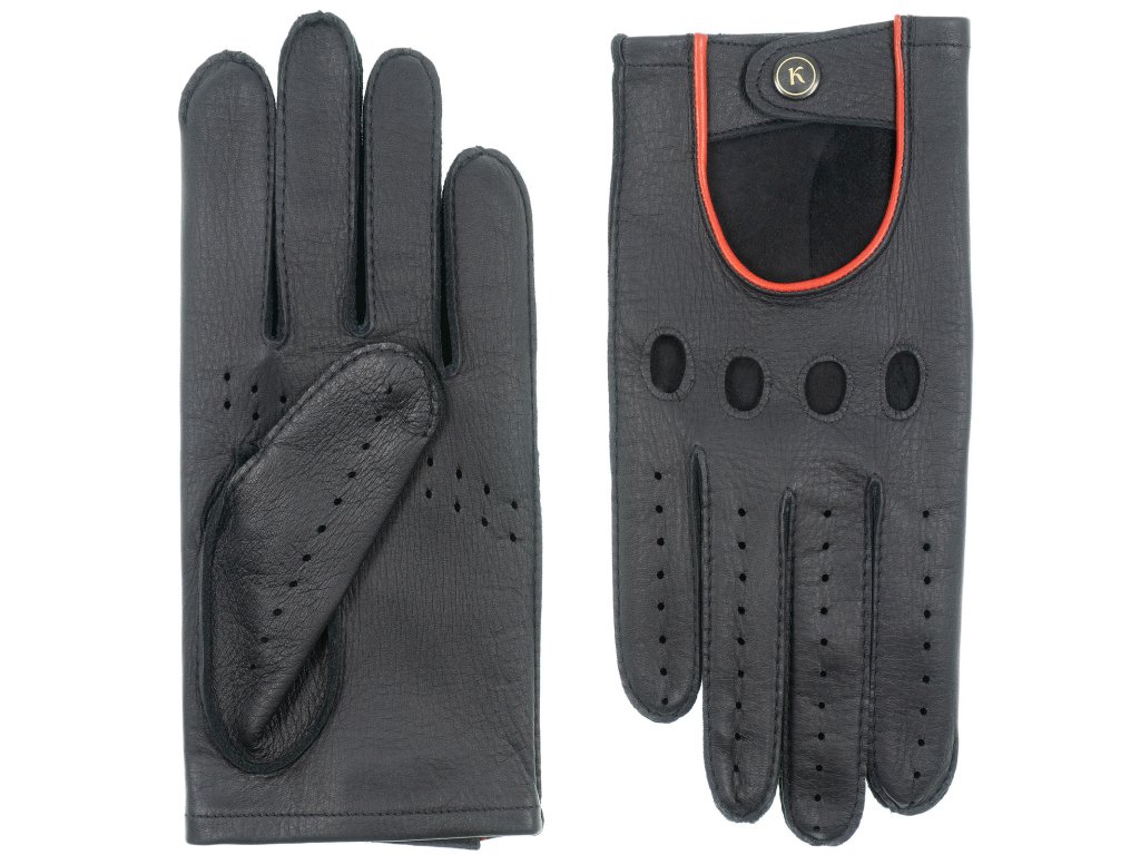 Pánske rukavice vodičské jeleň - čierne / červený lem