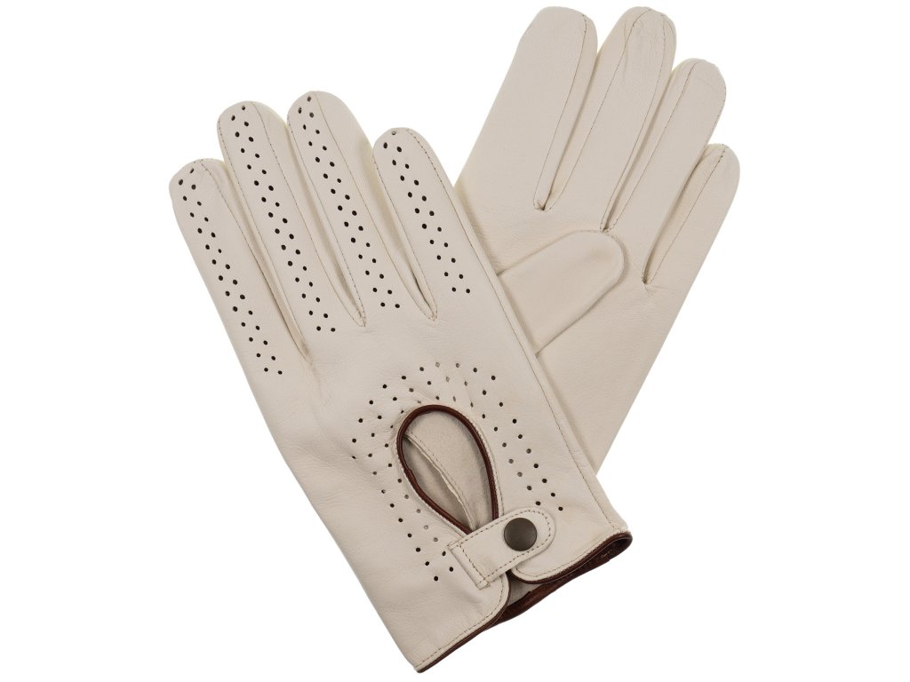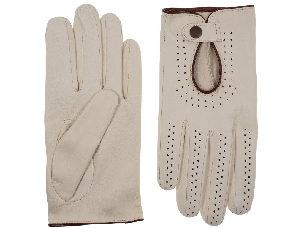 Pánske vodičské rukavice béžovej / hnedý lem