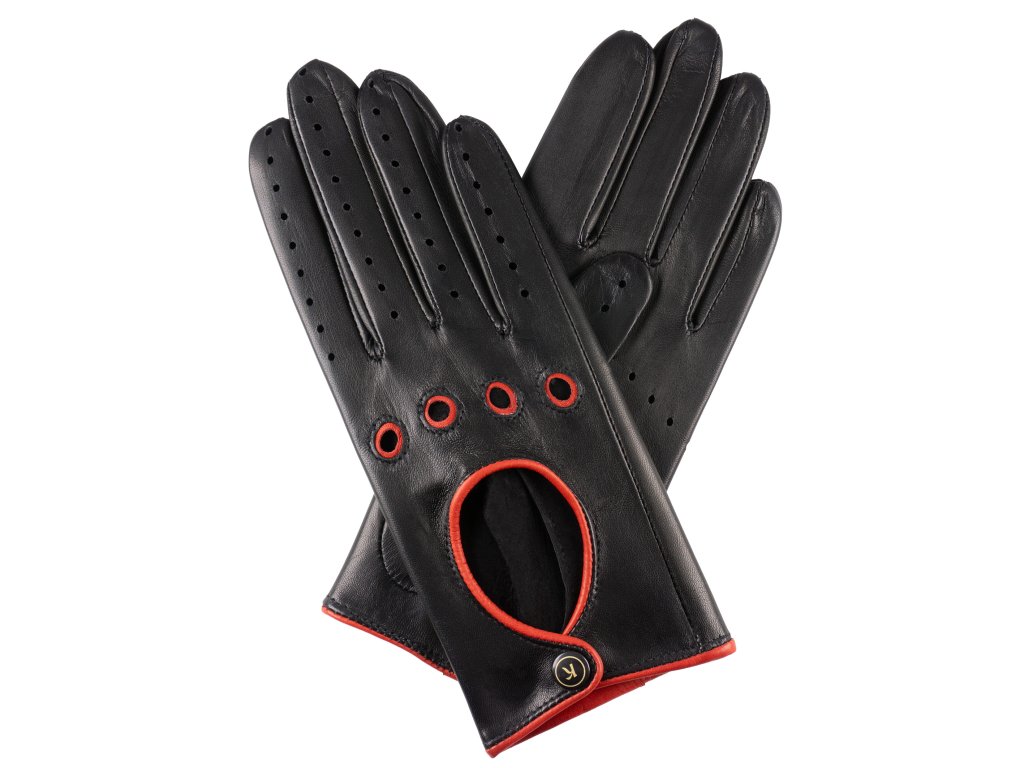Dámske rukavice vodičské - čierne, červený lem